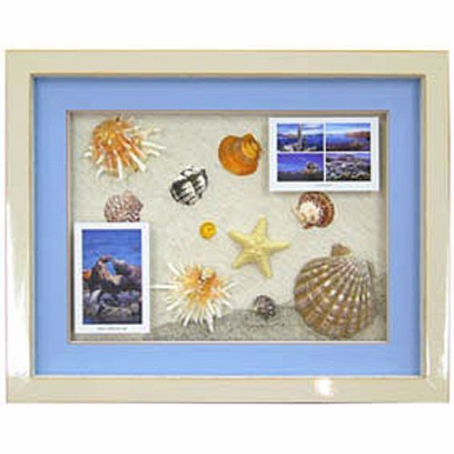 思わず拾ってしまう貝殻、額縁の中に砂浜を再現しました