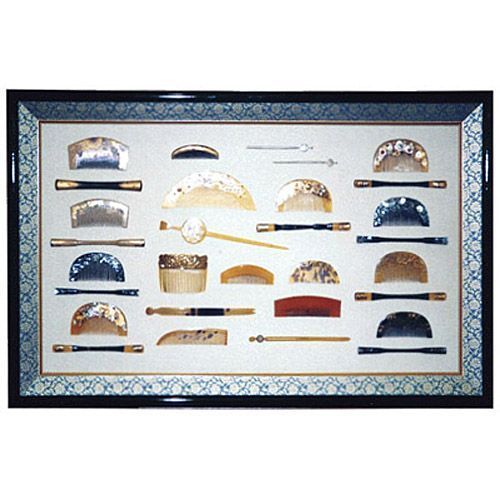 めっきり使わなくなった古い櫛。櫛はもともとコレクション的な意味合いも強いアイテムです。単に「櫛」といっても、様々な材質や細工の施された美しい品物。額に入れれば長年経ってもその輝きは失われません。