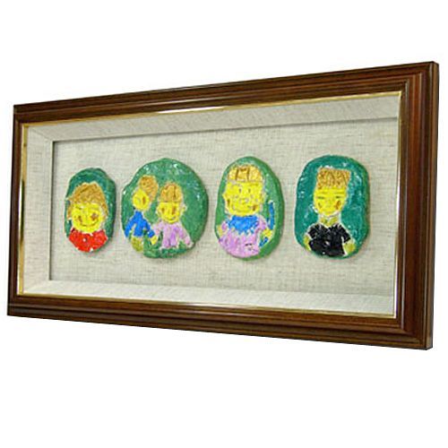 お子さんが作った紙粘土作品です。ご家族の肖像でしょうか?皆さんお揃いでとっても仲が良さそうで羨ましい限りです。子供の頃の作品は時が経っても輝いて見える力作ぞろい。額装しておくことで一生の宝物になること請け合いです。