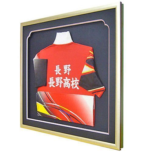 長野高校テニス部のユニフォームをオーダーで額に入れました。大好きな先輩の卒業時に譲り受けた大切な品物。額に入れることによって素敵な青春のメモリアルとなりました。深さのある額にダブルマットを組み合わせて、立体感を強調した仕上がりにしています。
