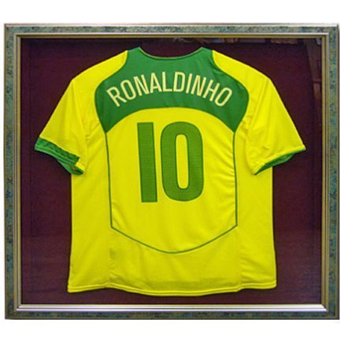 ロナウジーニョ選手のユニフォーム(レプリカ)をオーダーで額に入れました。