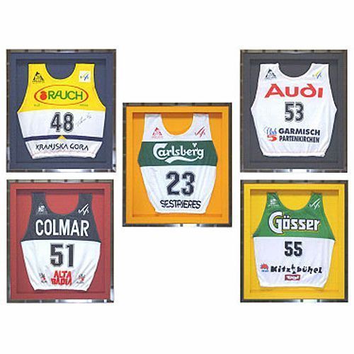 志賀高原で旅館を経営するお客様のご依頼です。現地で開催されたアルペン競技で使われたゼッケンですが、旅館内に展示コーナーを開設して飾っていただいたようです。