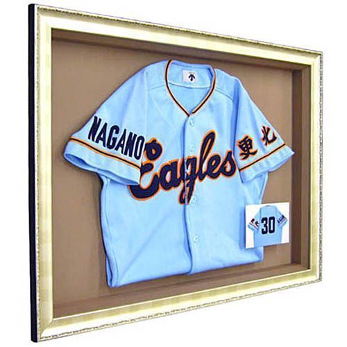 ユニフォームの背番号が見えませんが、背番号の写真も付けてフォローしています。構造上、両面が見える額縁は製作が難しいです。飾る場所も普通は壁を背にしますので、両面が見える額縁を作っても結局宝の持ち腐れになることがほとんど。両面仕様の額縁にこだわるよりも、お写真などでフォローするのは良い方法です。