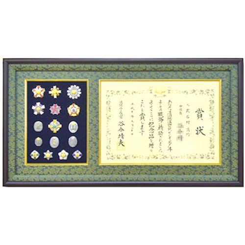 消防団活動の賞状とバッジをオーダー額に入れました。