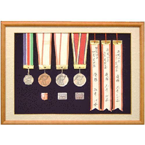 実はこのメダル、弓道で活躍したおばあちゃんの思い出のメダル。粗末には出来ず、額に納めました。こうして揃えて額に入ると、おばあさまが弓道で活躍されていた姿が目に浮かぶようです。