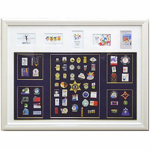 ピンバッジ専用のオリジナル額縁をご用意しておりますのでこちらをご覧ください。既製の額縁に、背景となるマットを組み合わせた商品になります。 フルオーダーで額縁をお作りすることも可能ですのでお気軽にお問い合わせください。