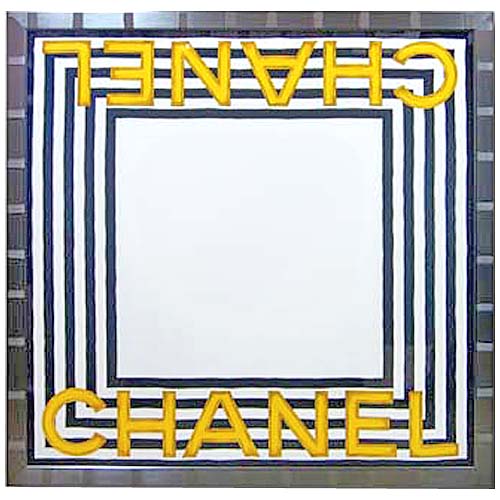 非常にシンプルなデザイン。CHANELの名前を前面に押し出したスカーフの額装です。他のスカーフでも散々言っていることですが、スカーフ周囲のラインが問題になります。直線の再現が不可能なため、どうしてもラインのゆがみが生じてしまいます。