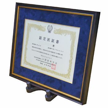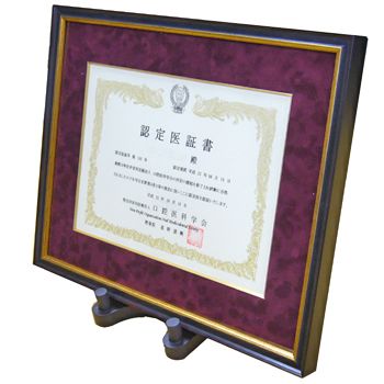 A4サイズの認定医証書を、布マットの面金付きで豪華に額装
