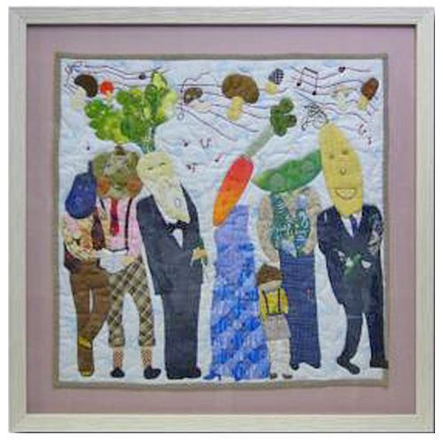 パッチワークをオーダー額に入れました。キルトのふんわり感を損なわないように、浮かし材を付け、強く圧着されないようにしてあります。作品の質感や素材感を最大限に生かして額装するのも、オーダーで額を作るポイントです。額縁内に確保した深さは15ミリほど。深すぎると鑑賞しにくくなるので、作品厚に合わせたベストな深さでお作りします。