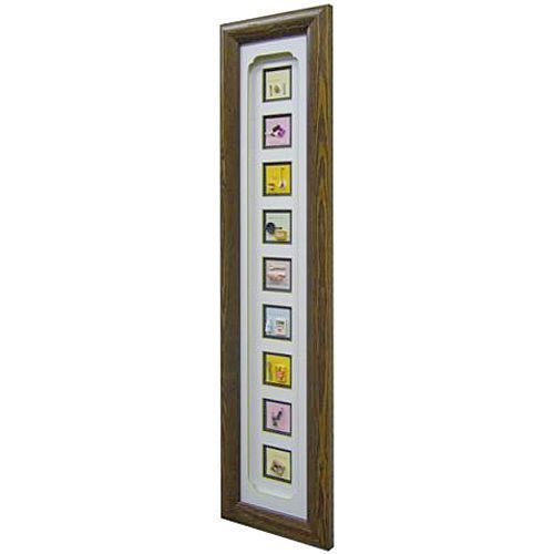 ミニコレクションを、背景マットに9つの窓を開けて額装しました。前面にも大きく窓抜きしたマットを配置して、額装の奥行きを強調しています。ナチュラルで可愛らしい作品が、たてに9つ並べることによって個性的になりました。