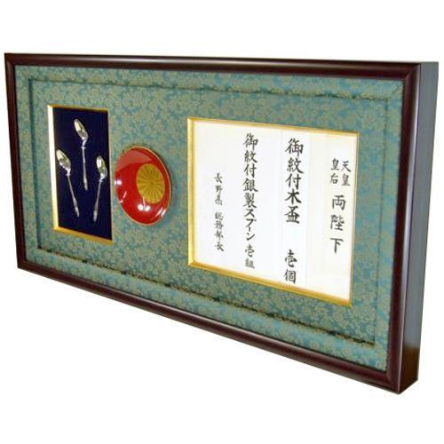 天皇陛下から賜った木杯とスプーンをオーダー額に入れました。木杯とスプーンはどういったいわれでいただける品物なのでしょうか。興味は尽きませんが、非常に貴重な品物であることは疑いようがありません。