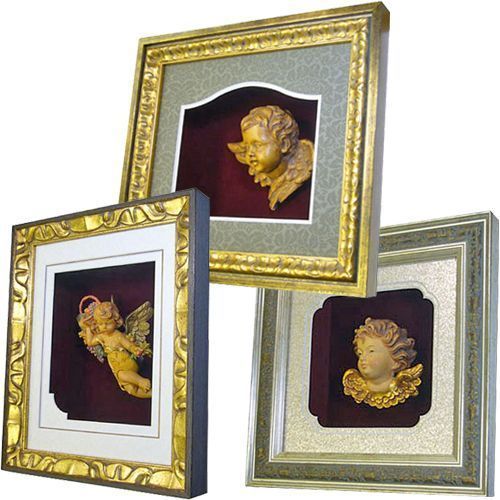 天使のオブジェをオーダーで額に入れました。エンジェルが大好きなお客様。そのままだと壁に固定できませんが、額装すればきれいに飾れるとお喜びでした。