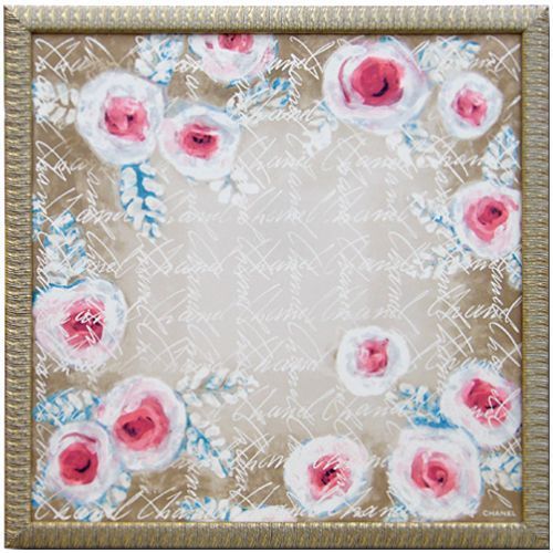 このサイズのスカーフだと、額縁全体の大きさが75cm程度で仕上がります。75cmの正方形ですから、インテリアとしての存在感は充分!日本の住宅事情からすると、90cmよりも額装に適したサイズといえるかも知れません。ストールとして使うには心もとないサイズでしょうが、中サイズのスカーフにも注目してみると良いと思います。