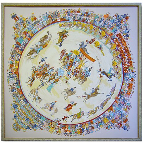 乗馬大会をモチーフにしたスカーフ。90センチサイズです。