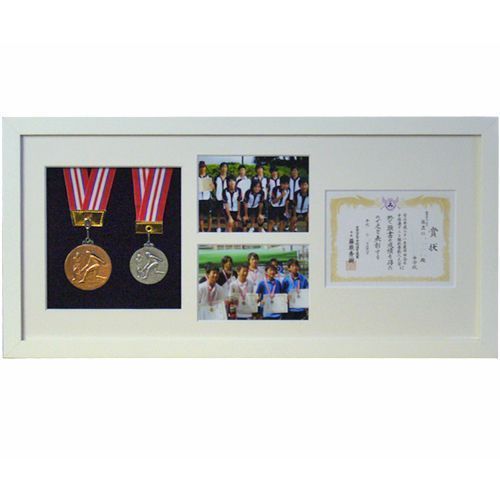 縮小コピーした賞状と、メダル、写真をオーダーで額に入れました。