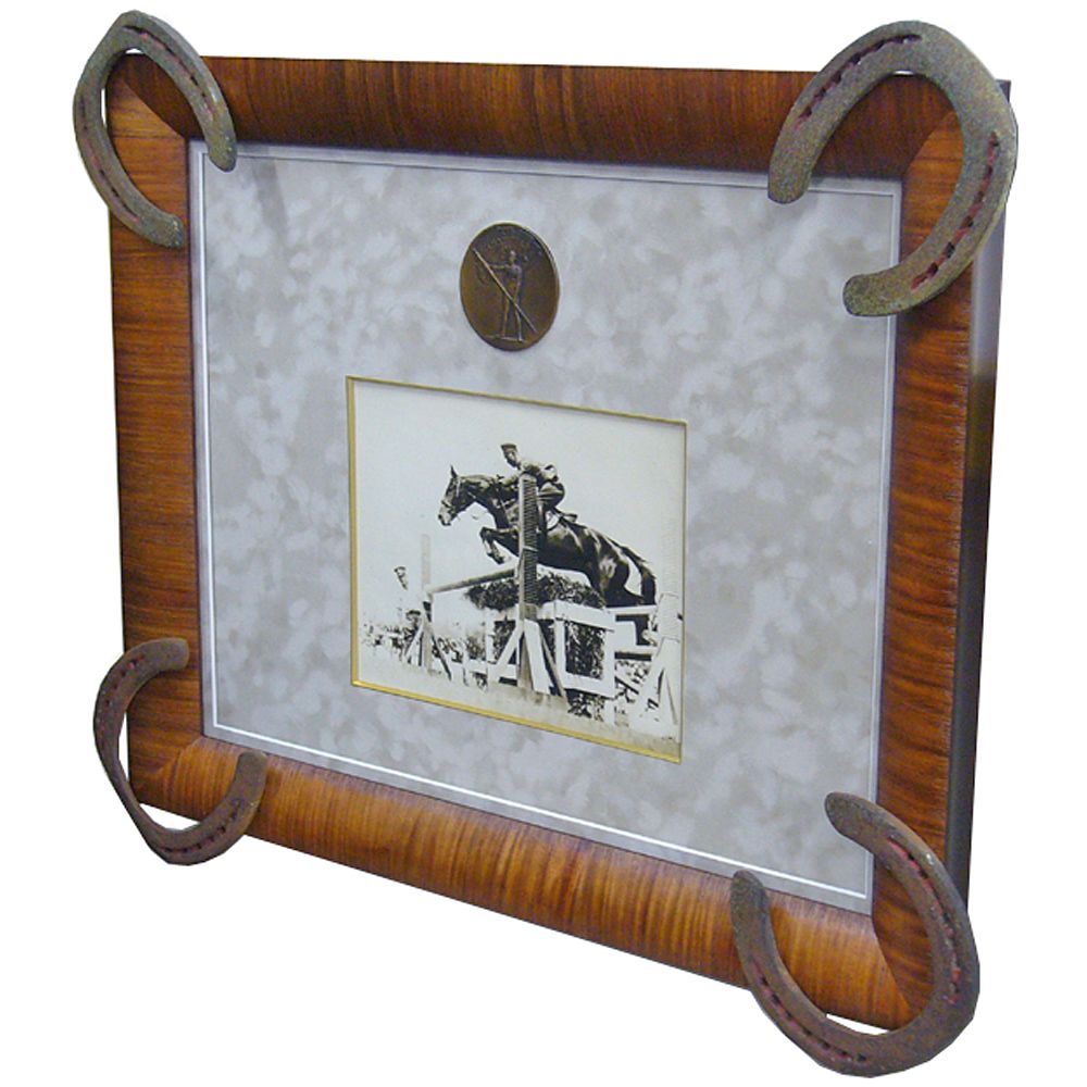 実際の蹄鉄をフレームの四隅に取り付けてあり、よく近付いて見ると蹄鉄の一つ一つの削られ方が異なっています。馬の躍動を感じることが出来る思い出のフレームとなりました。このような世界にひとつだけの額を作るのもオーダー製作ならではです。