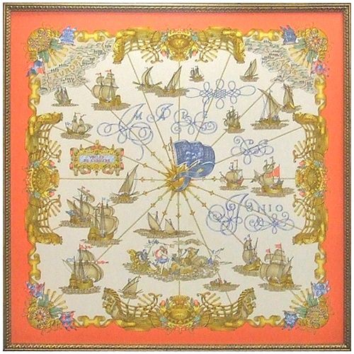 明るいオレンジのスカーフに、ゴールドの額縁が映えます