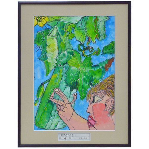 長野県で金賞をいただいた作品だそうで、迫力ある構図と色使いが圧巻の作品です。子供の頃に描いた絵は、後から見直すとその出来栄えにびっくりします。是非額装して、末永く楽しみましょう。