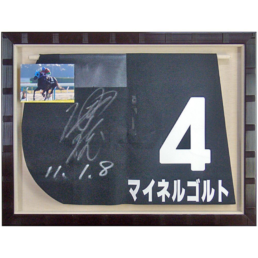 競走馬のゼッケンと写真をオーダー額に入れました。ゼッケンと、それを付けて馬場を走っている写真を一緒に額装しています。走る勇姿の写真を一緒に入れると、その時の姿が鮮やか思い出されますね。ゼッケンだけだと何が飾ってあるのかわかりにくいですが、写真が添えられていれば一目瞭然です。