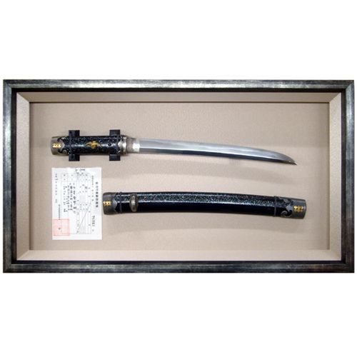 短刀と登録証をオーダーフレーミングしました。本物の刀身は独特の美しさがあり、威厳のようなものも感じます。額縁に入れることはごく自然な美術品と言えるでしょう。