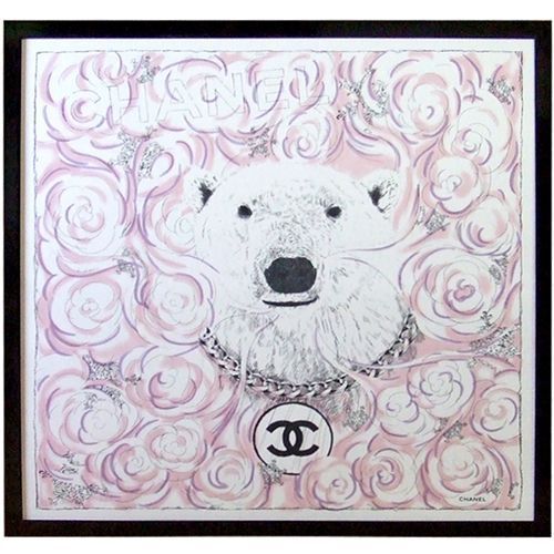大きな白熊がでんと構える、シャネルのスカーフの額装です