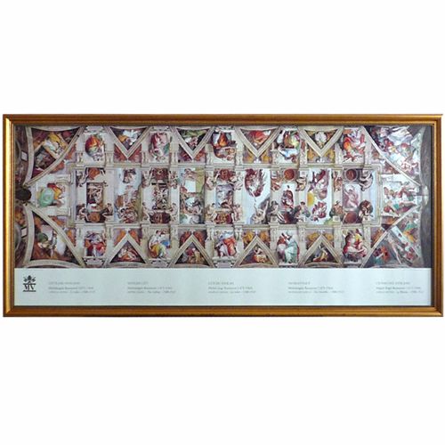 ミケランジェロ作の壮大な絵画のポスターを額装しました。イタリア旅行のお土産として、お求めになることも多いと思います。