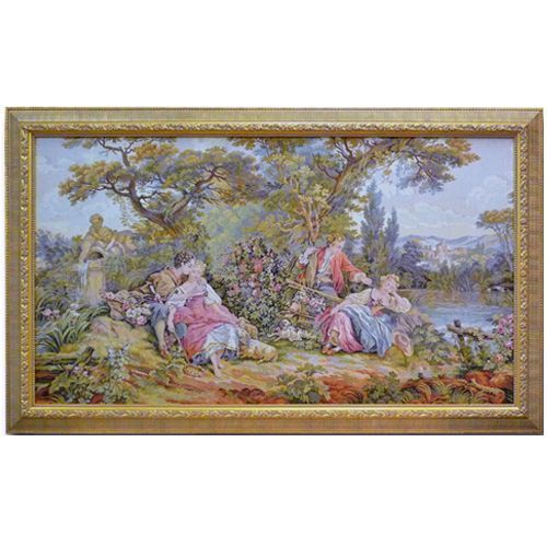 特大のゴブラン織りを額に入れました。風合いを損なわないよう表面にはアクリルを入れていません。