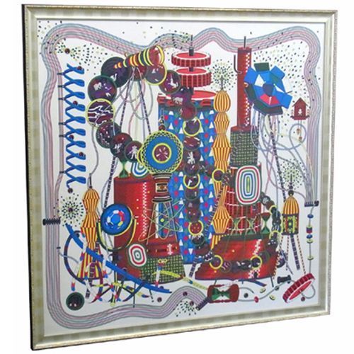カラフルな色彩の乱舞が目を引くスカーフ。オーダー額縁で額装しました。