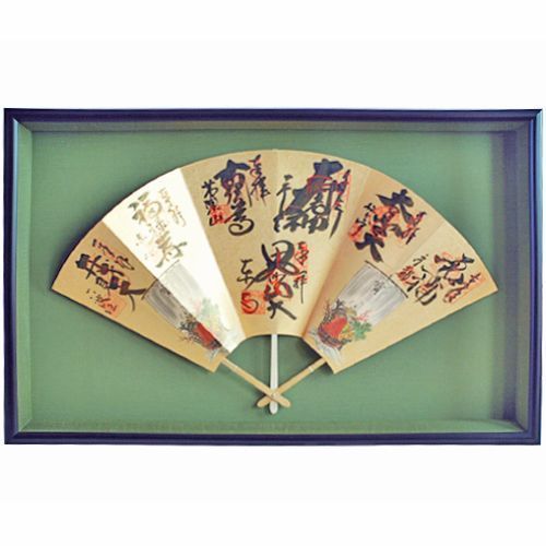 かなり大き目の扇子で厚みもありましたので、深さをとった額縁をお作りしています。60ミリほどの内部深さを確保していますので、扇子がアクリルと触れてしまうようなことはありません。