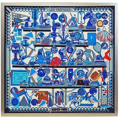 スカーフ額装のお見積り~ご注文の流れ エルメス・カレの2013年春夏コレクション、『Les Trophes(トロフィー)』を額縁に入れました。