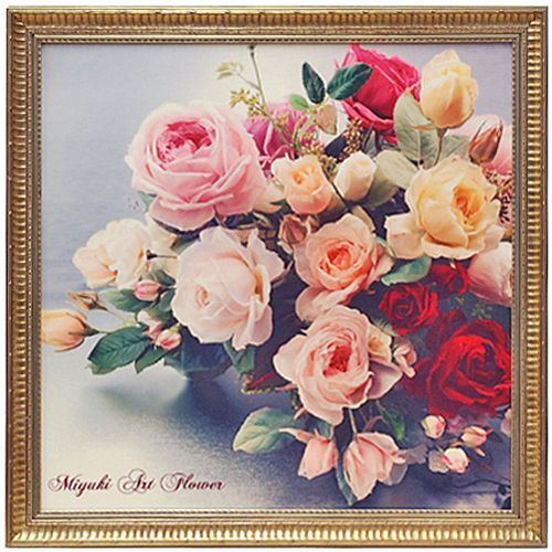 アートフラワーの創始者、飯田深雪さんの作品をモチーフとしたハンカチの額装です。飯田深雪さんはNHK「きょうの料理」に初期から出演した料理研究科でもあり、料理はもちろんテーブルセッティングやインテリアなど、多くの著作が発表されています。