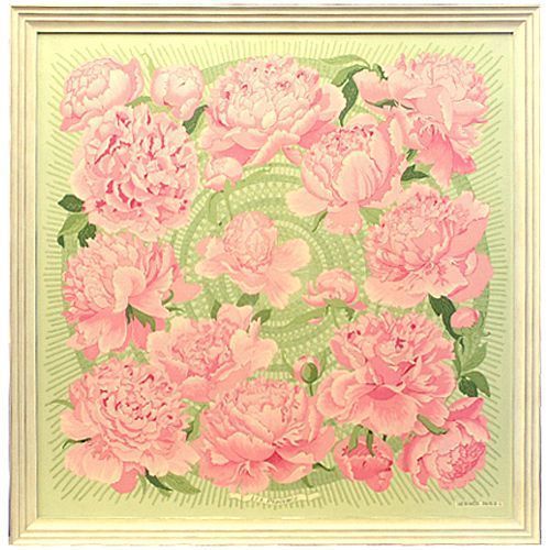 ピンクの大きなお花がダイナミックに描かれたスカーフの額装です。木地目をいかしたホワイトのフレームで額縁をお作りしました。使用したフレーム、『32-6780』は段差が重なるような特徴的な形状。お値段は若干高めですが、フレーム太さも充分、上品で高級感のある仕上がりとなりました。