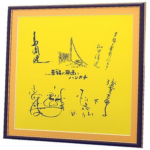 北海道を舞台に繰り広げられる邦画、『幸福の黄色いハンカチ』のハンカチを額縁に入れました。『幸福の黄色いハンカチ』は第一回日本アカデミー賞の各賞を総なめにした、日本ロードムービーの代表作。もう35年も前に公開された映画ですが、いまだにロケ地周辺ではこういった品物が好評を得ているようです。