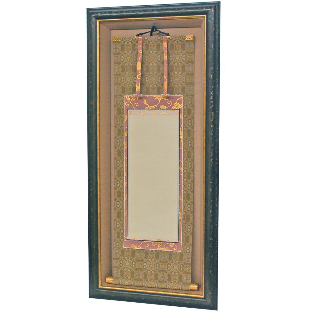 とは言え、「掛け軸のまま額縁に入れたい」というご依頼は多々承っております。掛け軸よりも一回り以上大きな額縁をご用意することになりますので、飾る場所との兼ね合いもありますが、