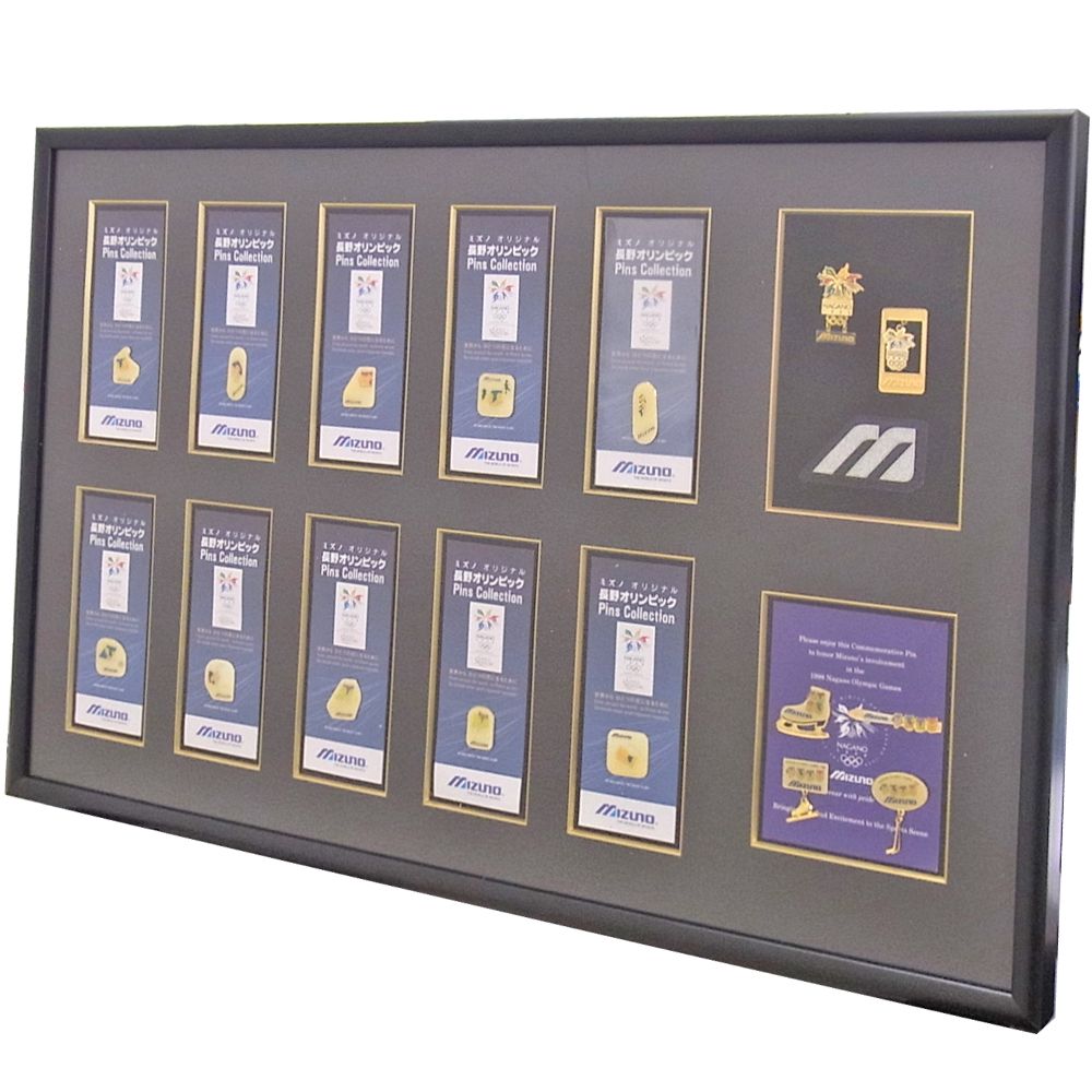 台紙に付いたピンバッジコレクション、そのまま額縁に入れました