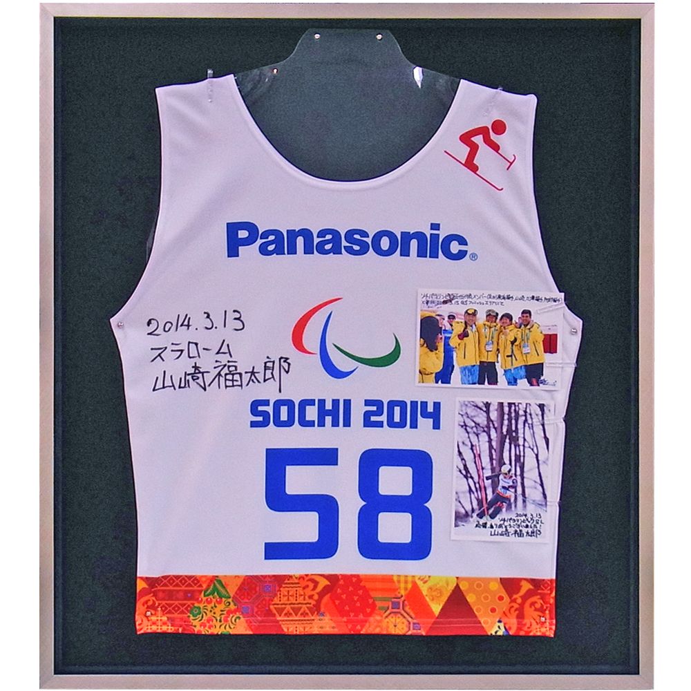 ソチ冬季パラリンピックのゼッケンを額装しました。アルペンスキー競技に出場した山崎福太郎さんから、在籍していた信州大学教育学部に寄贈されたものです。