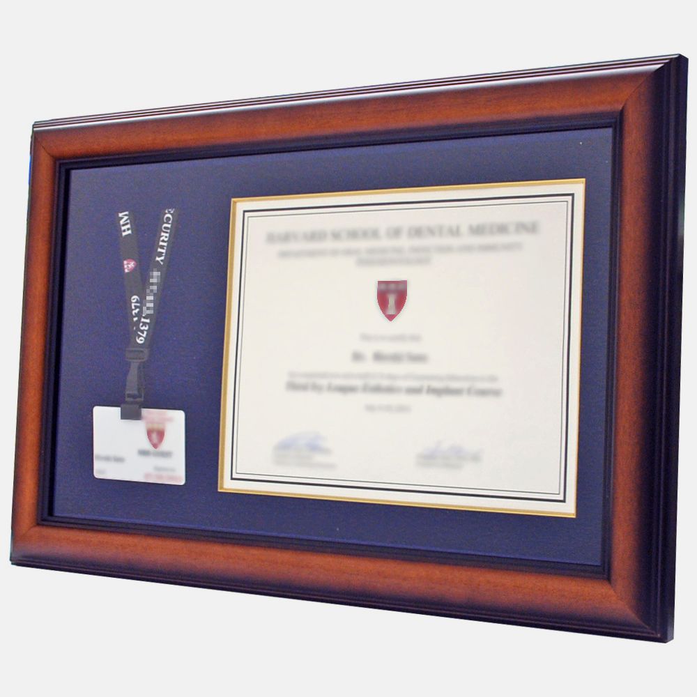 海外研修で勤務した病院の、スタッフカードと研修修了証。修了証を額装するのはごくごく普通ですが、スタッフカードも一緒に飾りました。首からぶら下げるスタッフカード、額縁の中でもぶら下げる形で自然にレイアウトしています。
