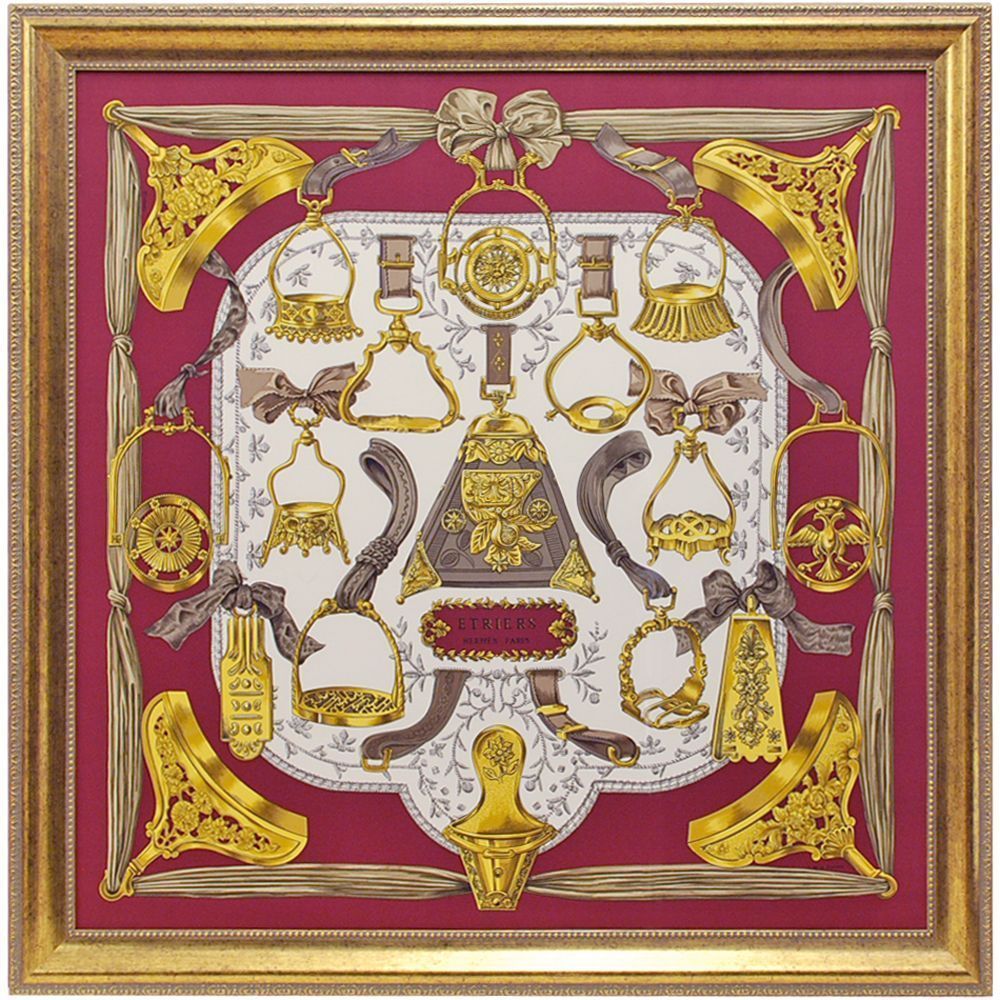 エルメスのまさに王道、馬具をモチーフにした「ETRIERS」と呼ばれるスカーフ。ストーリー性を感じさせるデザイン、くっきりと際立つ色合いは、エルメスの名に恥じぬ見事な出来栄えです。