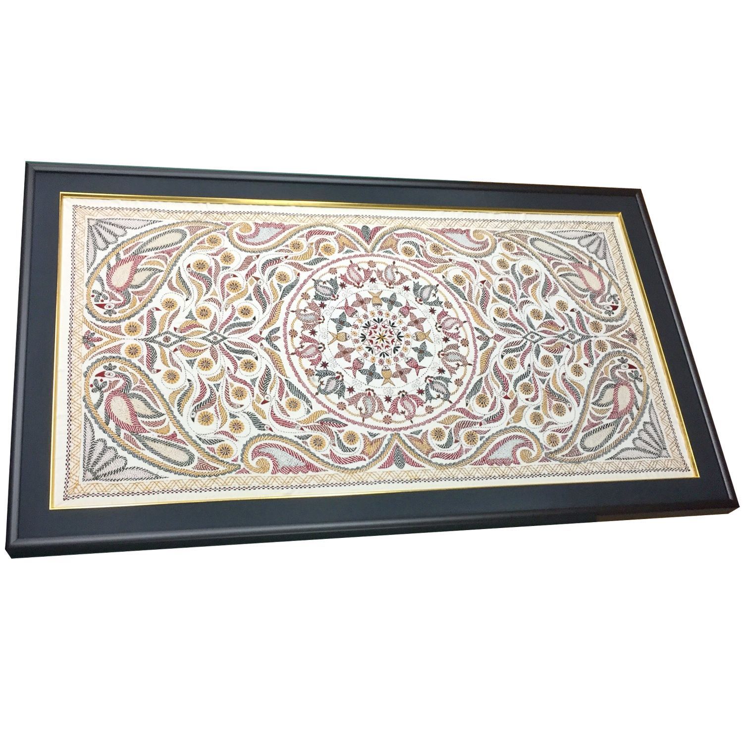 通常の紙マットサイズを越える大きさの大きな刺繍。ベニヤに布貼りしてお作りする、特製マットを付けて額装しました。