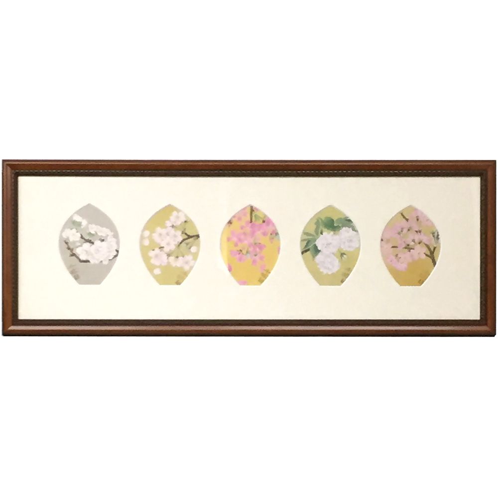 善光寺のご開帳でいただいた、5枚セットの散華札の額装です。今年2015年はまさに善光寺ご開帳の年ですが、この額装例の散華札は前回(数え年で7年前)ご開帳の時の記念品のようです。