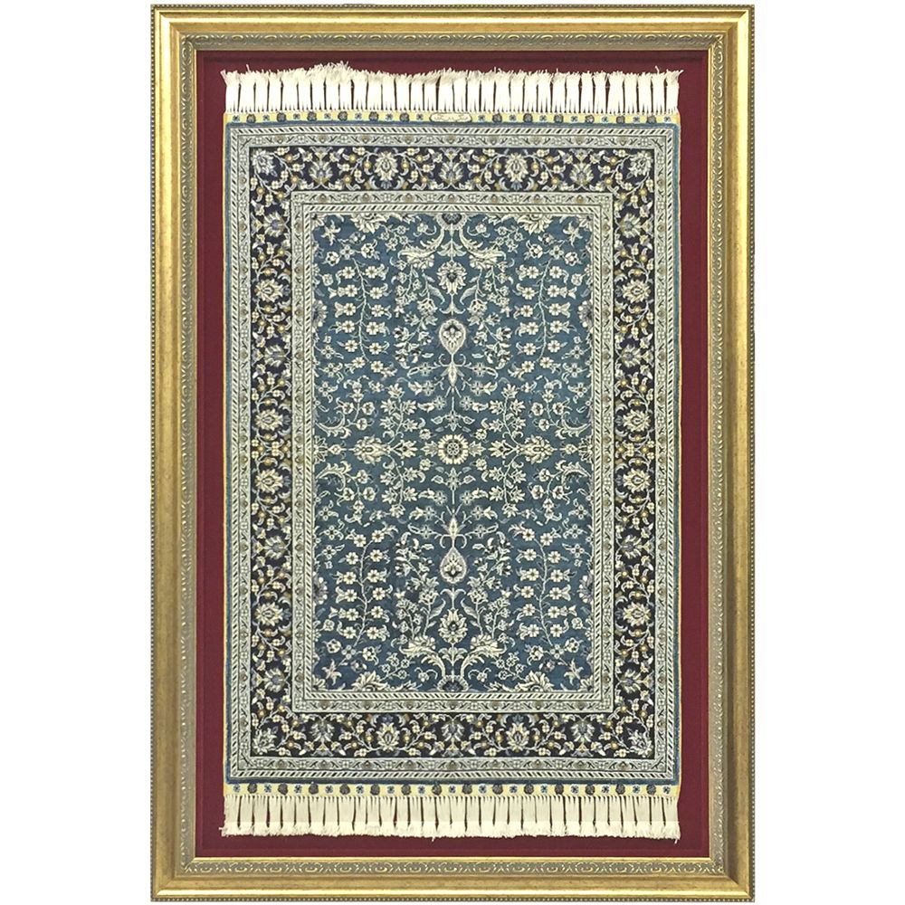絨毯のベストな額装方法は、絨毯の厚さが余裕を持って納まる額縁に、張り込み作業をして固定すること。ふっくらとした風合いが損なわれてしまうため、アクリルカバーが触れるのはNGです。