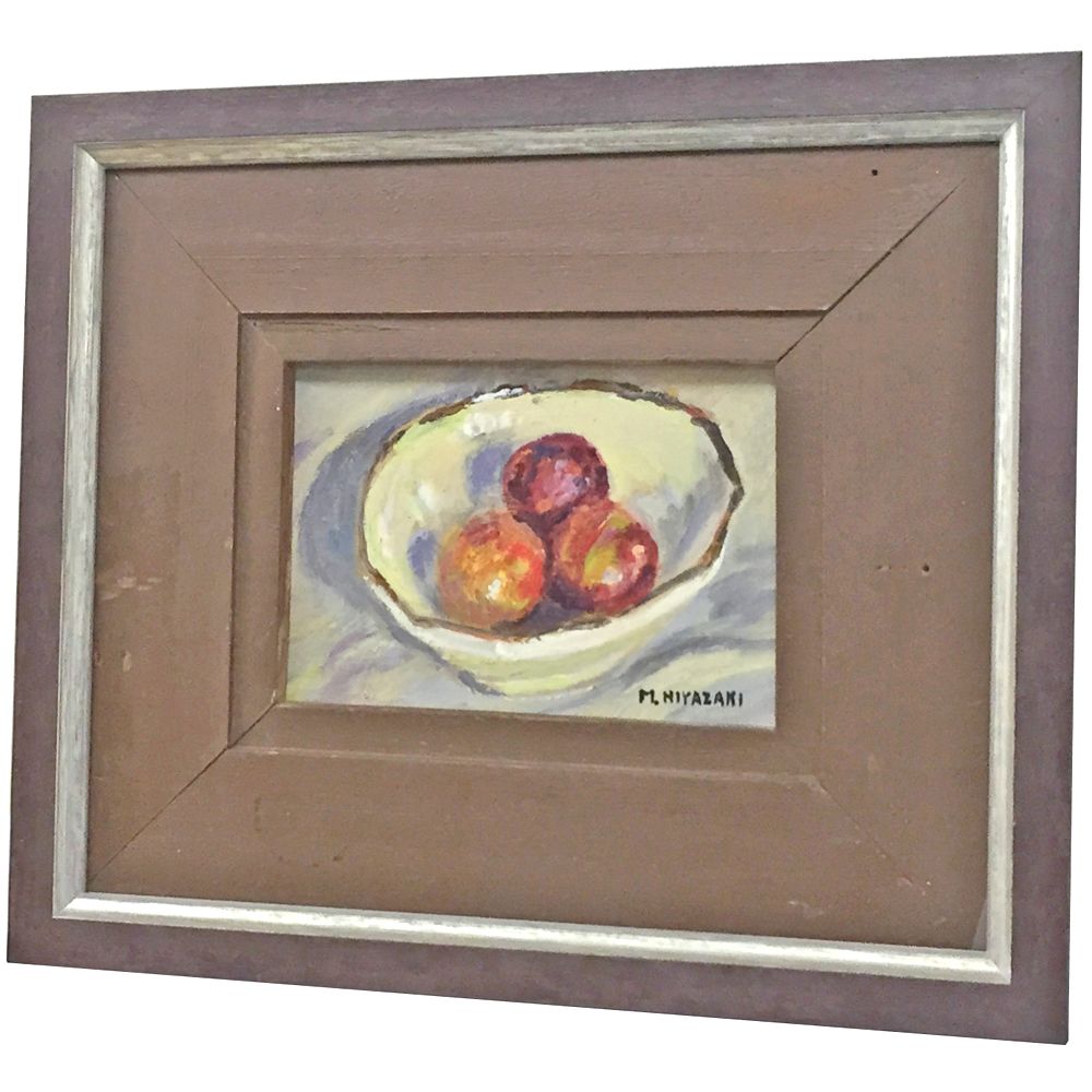 額縁に入った小さめの油絵の作品です。元からの額縁を生かして、額縁を額縁に入れました。元の額縁が、フラットでシンプルなデザインだったのが幸を奏しました。まるで元の額縁がマット材のような働きをしています。表面カバーのアクリルが付属していませんでしたが、こちらの額装では表面カバーも付いて万全です。