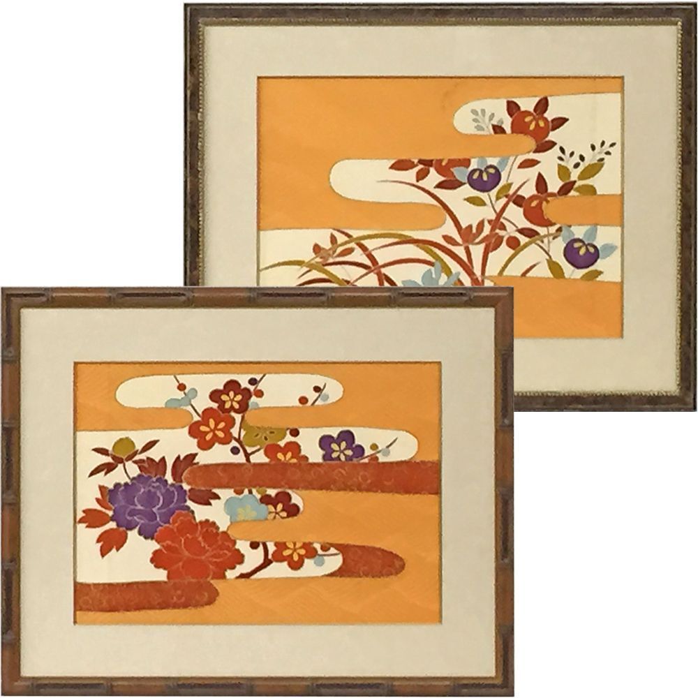 乾式裏打ちを施して、平坦に伸ばしてから額装しています。友禅染はそう簡単に色落ちするものではないので、裏打ちの作業もしっかり行って額装品としての仕上がりを高めたいところです。