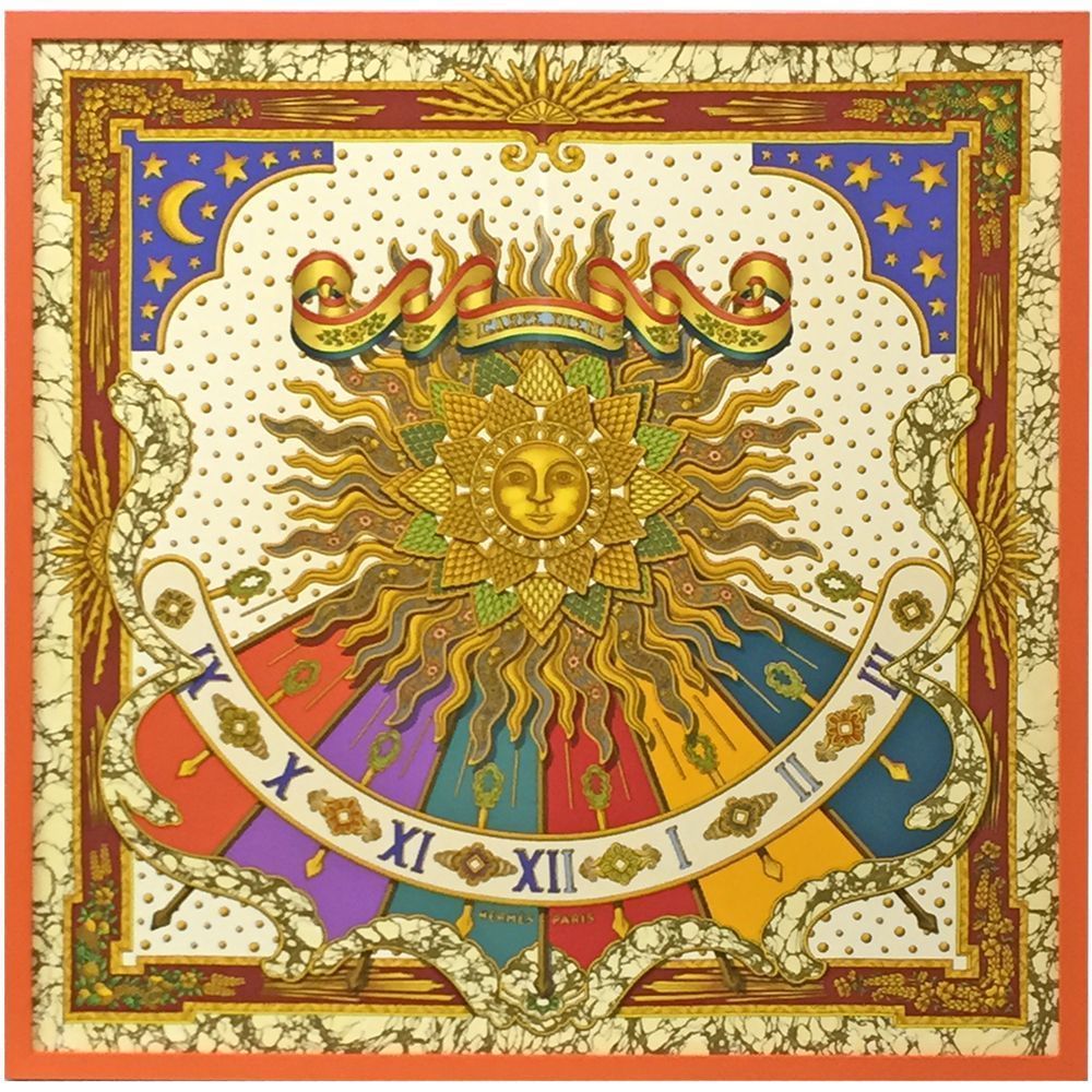 日時計と太陽が描かれたスカーフ。CARPE