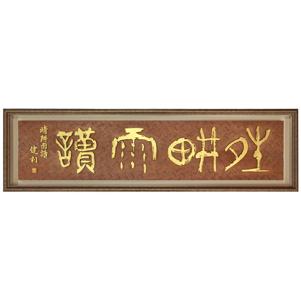 刻字とは主に木材に彫りこんで文字を美的に刻すこと。刻して彫り込まれた文字には彩色も施され、表現の幅が非常に広い作品となります。工程上、工芸や彫刻と関連が深く、総合的な芸術として楽しめるのが特徴です。