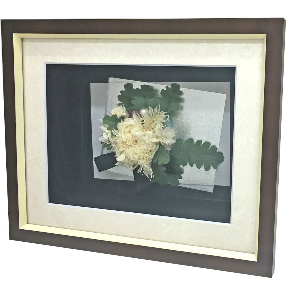 立体スペーサーを使うと、額縁に70ミリ超の深さを加算することができます。お花のデコレーションはふんわりとした立体感で厚みが嵩むものが多数あります。それでも70ミリの深さがあれば、ほとんどの作品が余裕を持って飾れるのではないでしょうか。