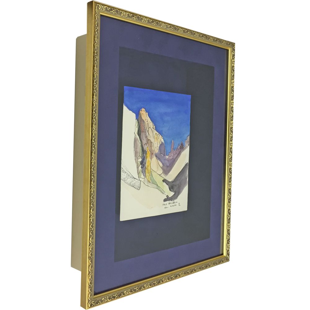 水彩画を浮かし額装で飾りました。浮かし額装とは品物を土台に固定し、浮き上がらせて飾る手法のこと。当然、深さに余裕のある立体額が必要になります。紙などの薄い品物といえども、工夫次第で立体額の方が映える場合があります。造花などの厚みのある品物だけが、立体額の活躍する場ではありません。