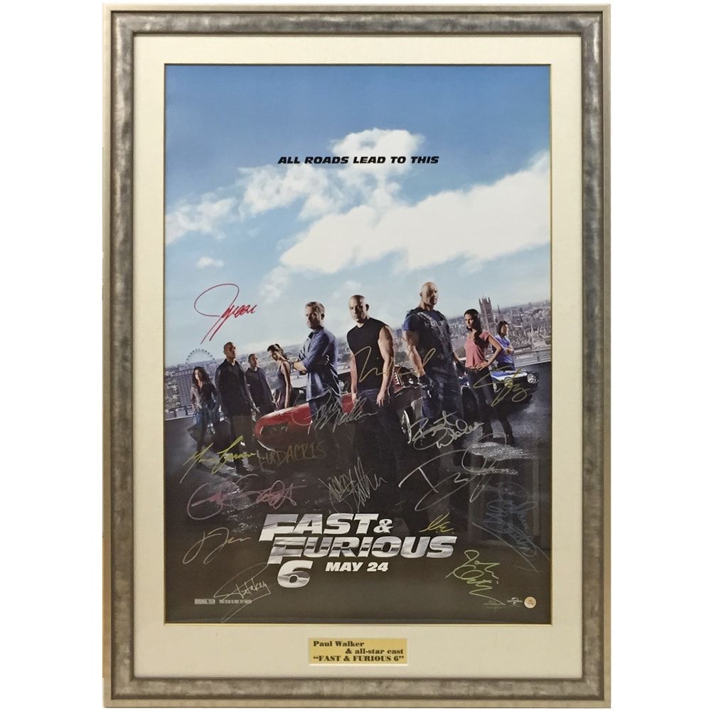 Fast & Furious 6(邦題:ワイルド・スピード EURO MISSION)の映画ポスターです。登場人物が並んだポスターに、各々のサインが入った超豪華仕様。特にFast & Furious 7(邦題:ワイルド・スピード SKY MISSION)の撮影中に亡くなった、ポール・ウォーカーのサインは大変貴重です。