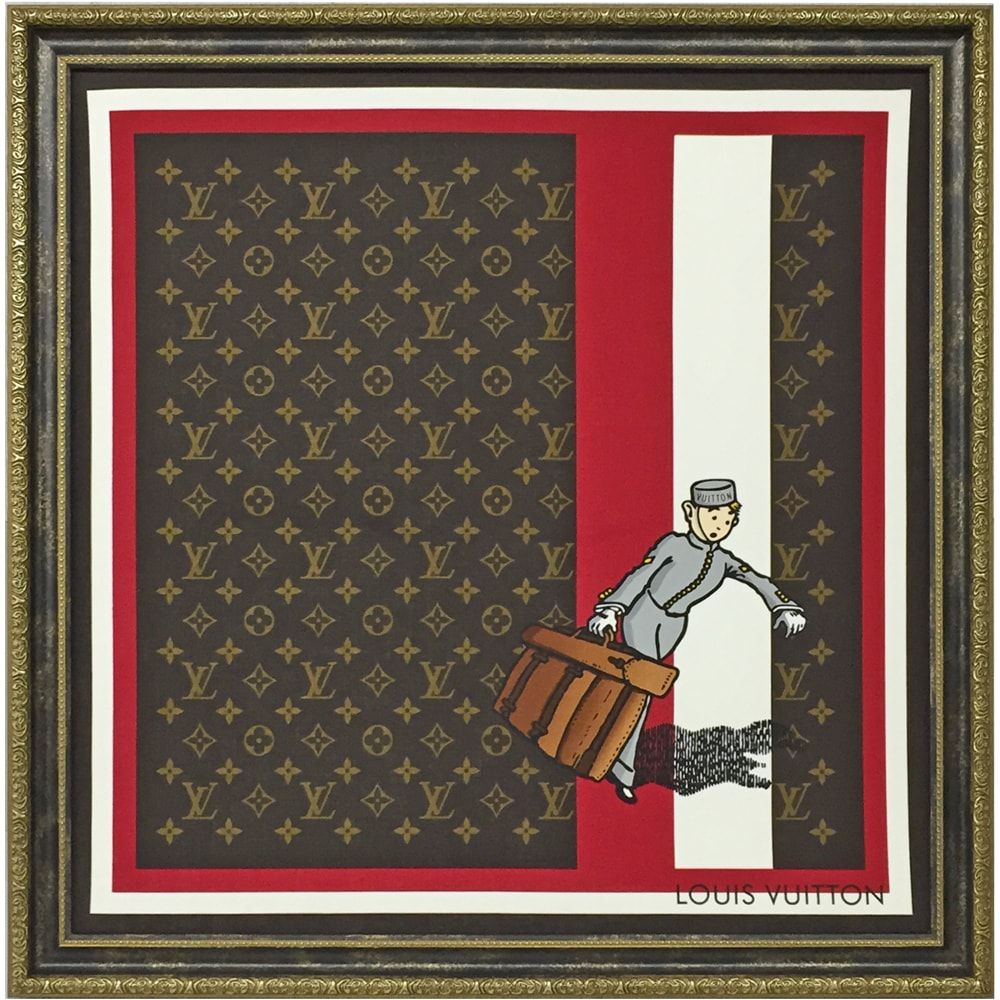 かわいいポーターが描かれた小ぶりのスカーフ。ルイヴィトンの象徴・モノグラム柄と、かわいいイラストの対比が楽しめます。