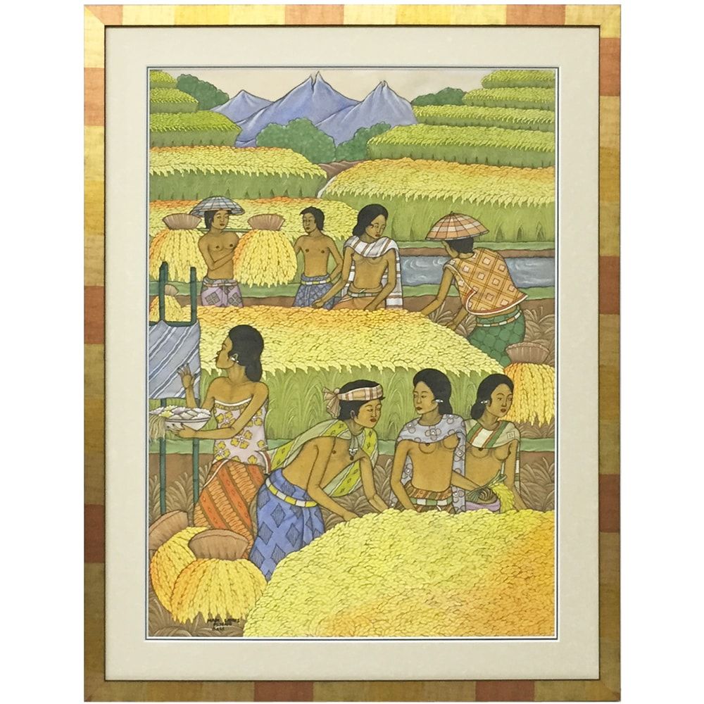 海外で求めたキャンバス画布の額装です。異国情緒溢れるアクリル画、お家に飾ればお客様の目を引くインテリアになることは間違いありません。